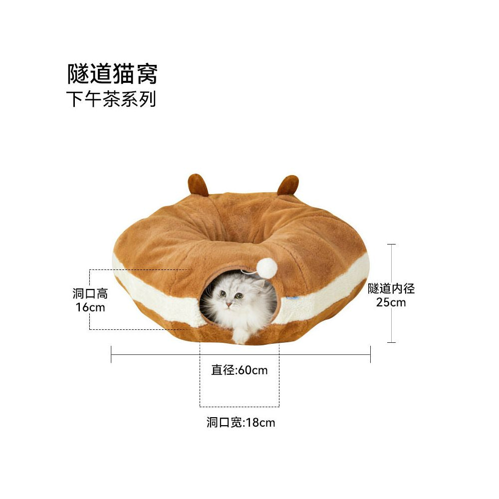 【Fukumaru 福丸】北國系列甜甜圈貓窩|360度封閉式環形隧道躲避屋,冬季加厚保暖貓床